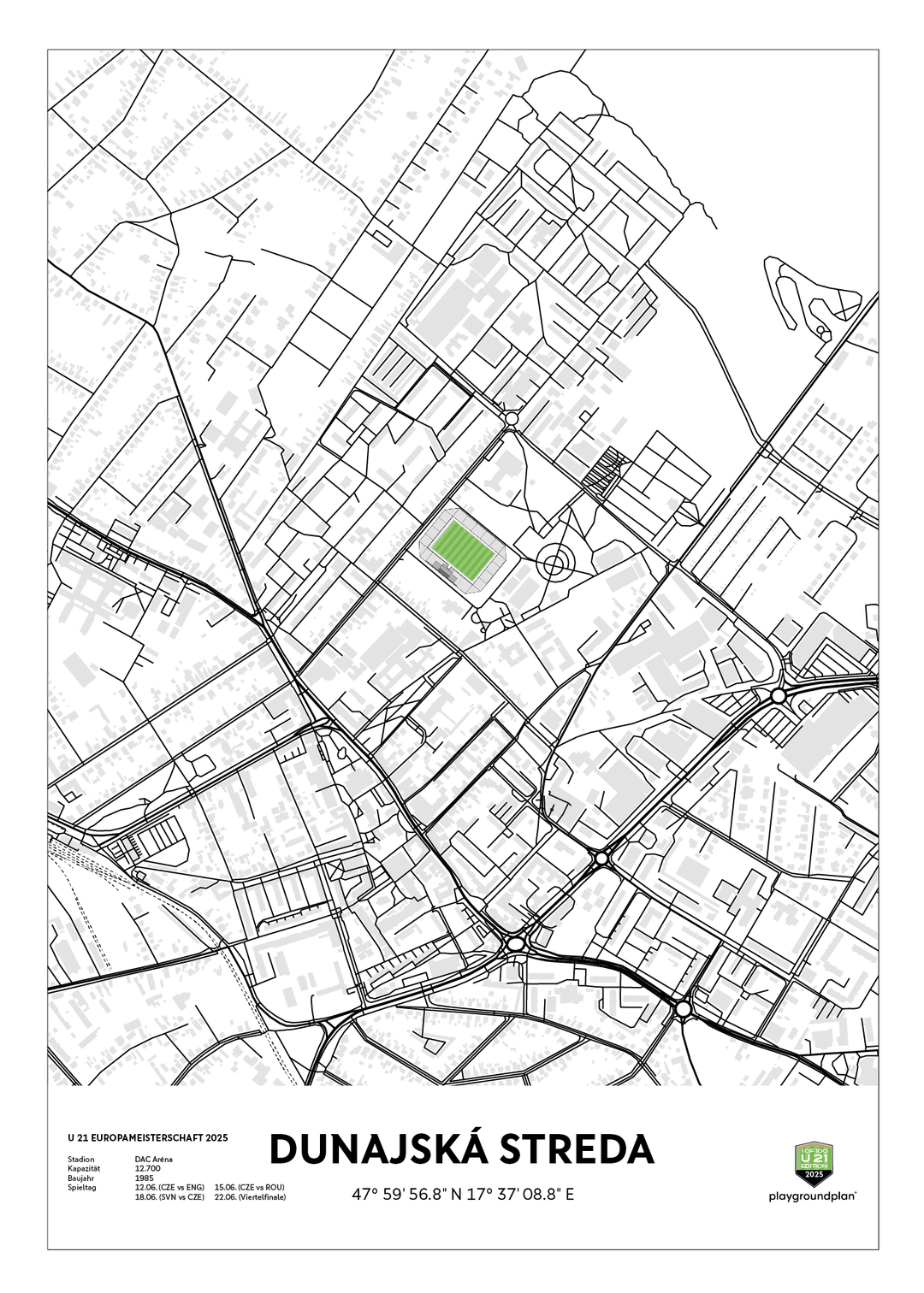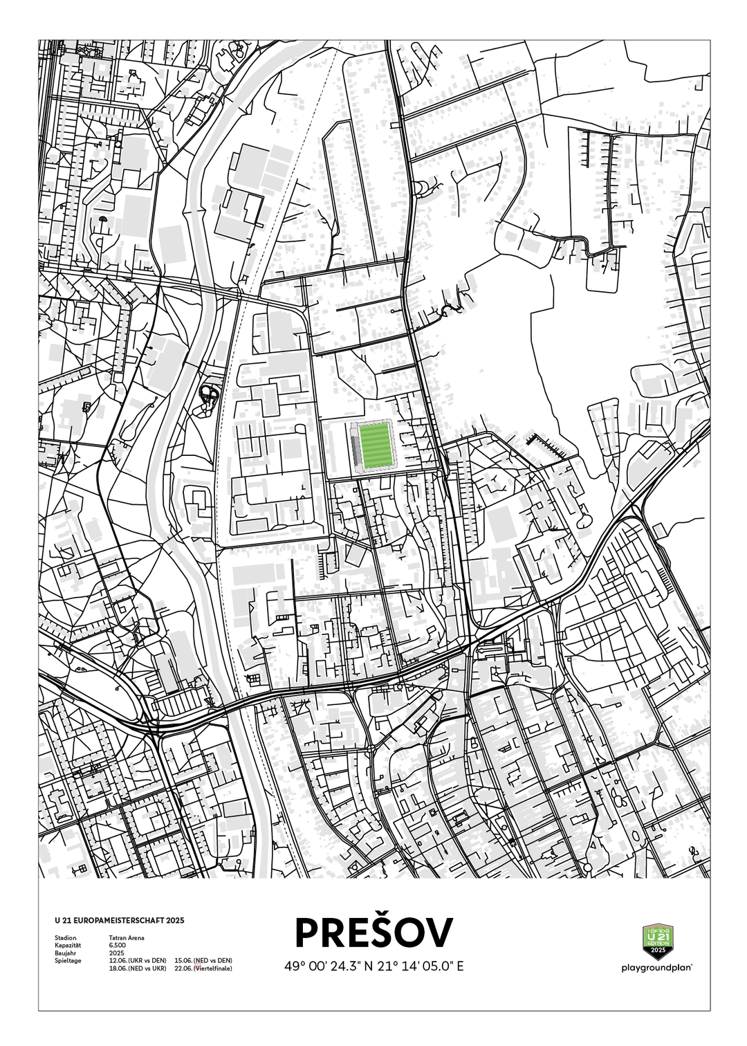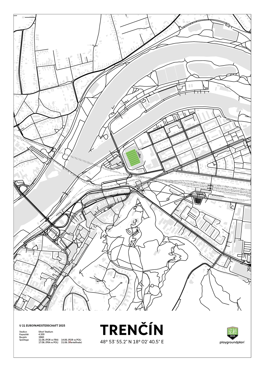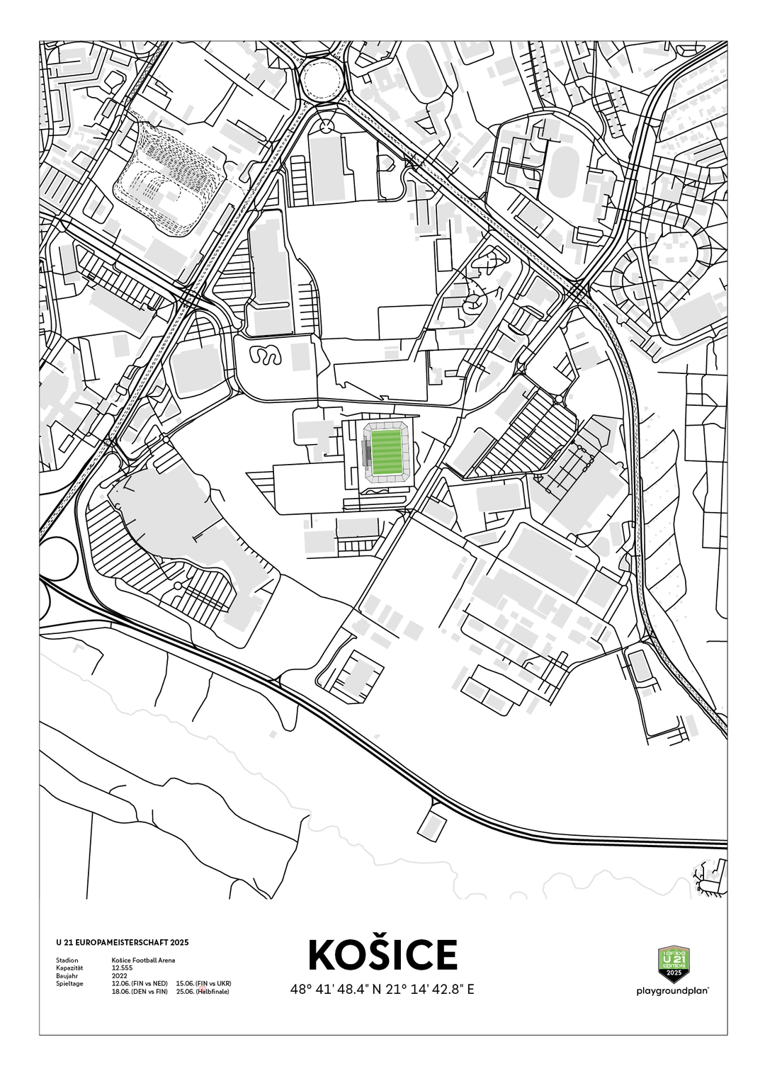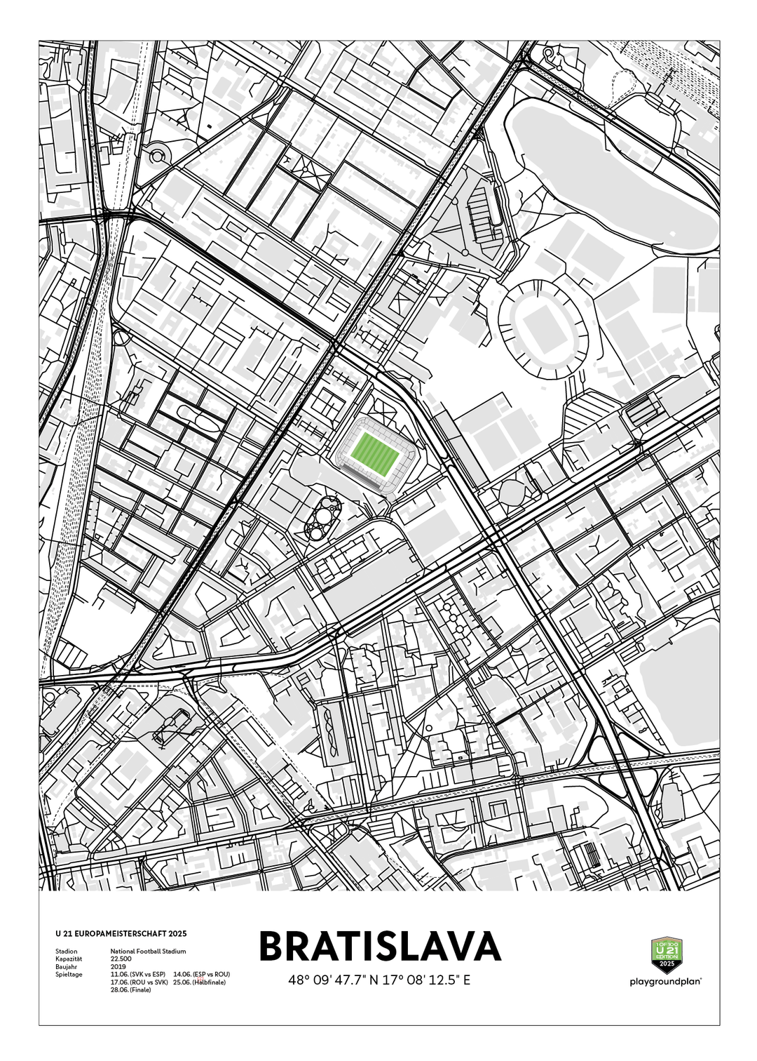 Die besondere Atmosphäre der slowakischen Stadien eingefangen als einzigartiger Stadplan, der dich den Spielorten der Europameisterschaft näher bringt.